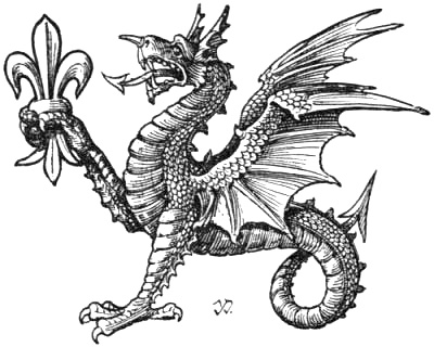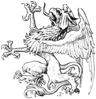 In conclusion, having, as far as possible, given the raison d’être of each, and traced the life-history and characteristics of the many strange and fantastic creatures in our symbolic menagerie, it only remains to express the hope that the information contained in this volume may be found both interesting and useful, as without some such knowledge there can be little or no intelligent understanding of the proper treatment of the forms of these mythical and symbolic beings. The suggestive illustrations, while giving the recognised forms of each, leaves to the artist free scope to adopt his own style of art treatment, whether purely heraldic or merely decorative.