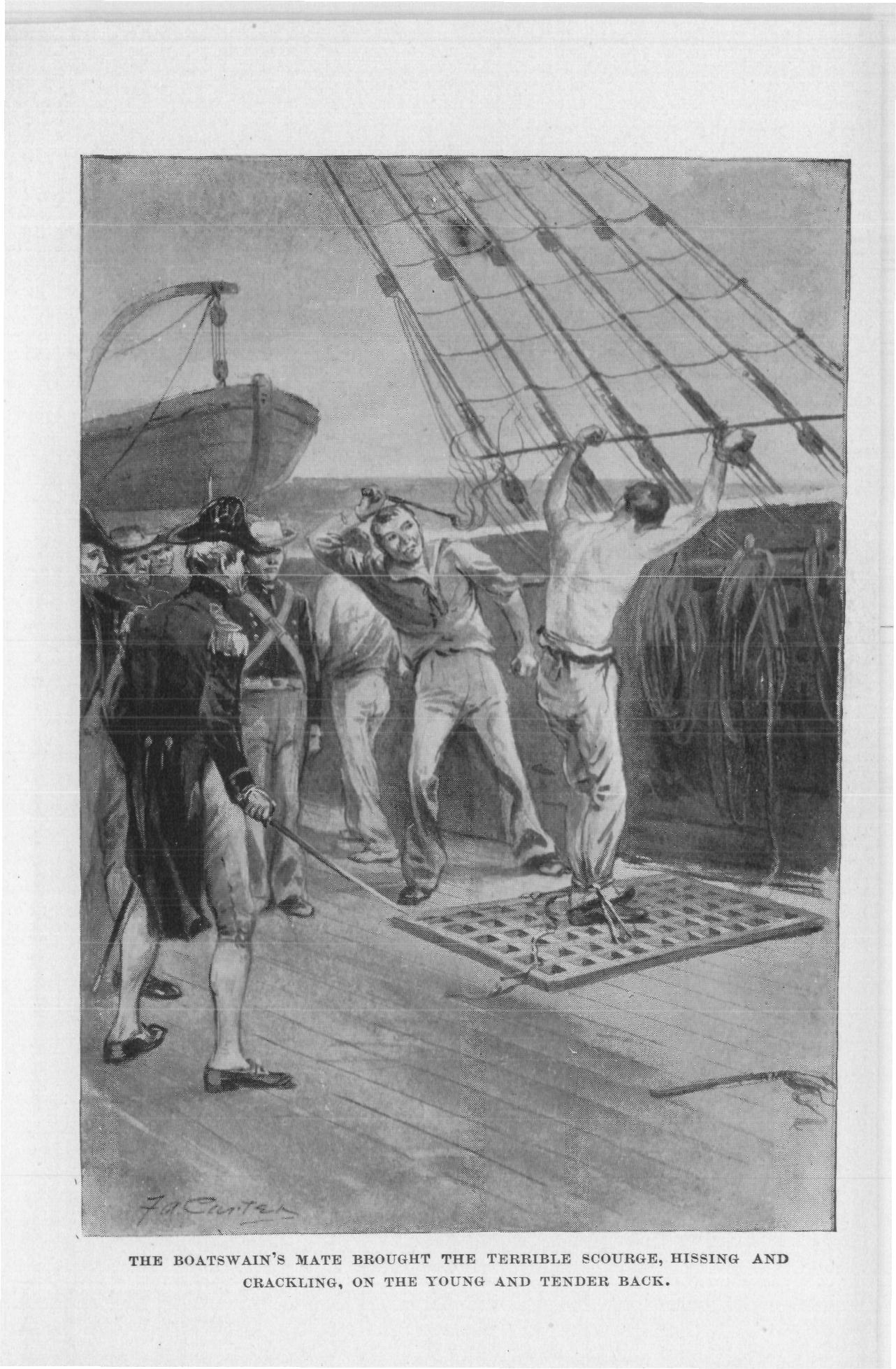 The boatswain's mate brought the terrible scourge hissing and crackling on the young and tender back