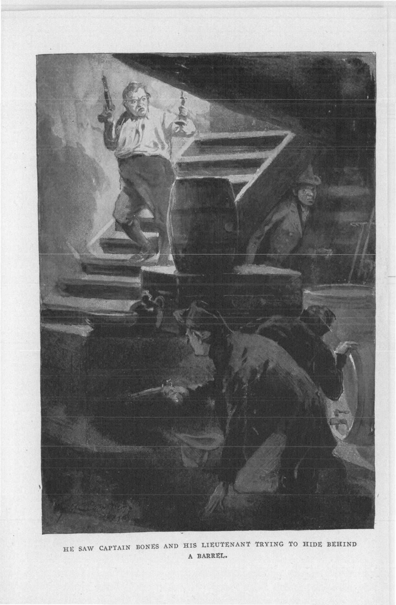He saw Captain Bones and his lieutenant trying to hide behind a barrel