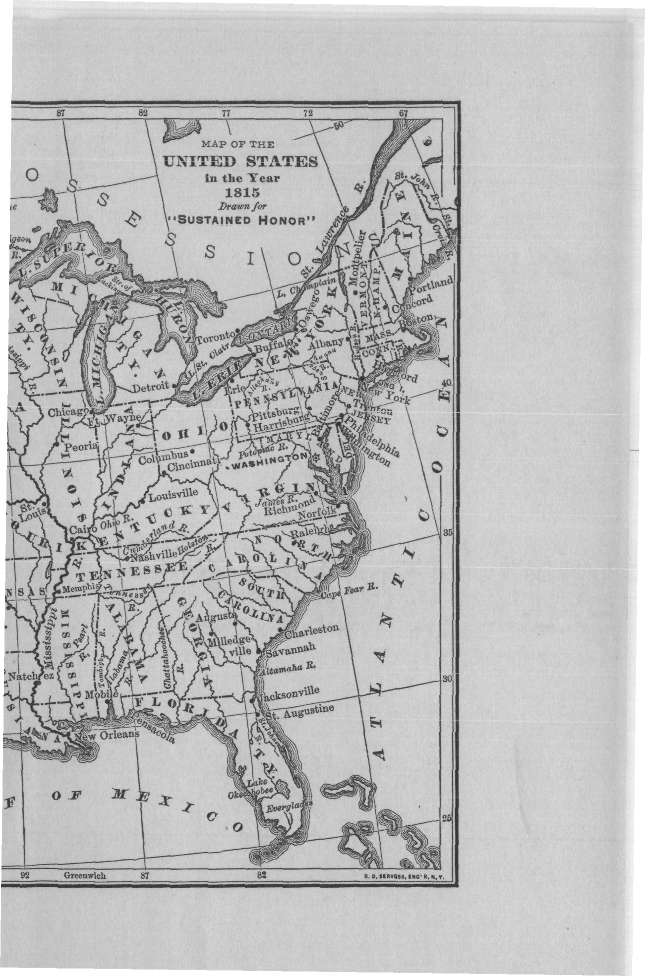 After studying the patriotism of New England through the War of the Revolution, one is surprised at the unpatriotic actions of that section of the United States in 1812. One can hardly believe that it was party fealty and political hatred of the democratic party alone which made these formerly patriotic colonies and States hot-beds of sedition and treason. It looks as if those States, having built up a flourishing trade with Great Britain, cared little about the impressment of sailors, or the enslaving of their countrymen, so long as they filled their own pockets. The men seized were usually poor, and their happiness, liberty and life were lightly regarded in comparison with the prosperity of the "Peace Party" merchant. If patriotism were dormant in the East, however, in the growing West, and the generous South it was strong. From those sections came the hardy sons of liberty, who taught Johnny Bull anew to respect the rights of the common people. Though the treaty of peace was not satisfactory in many particulars, it more clearly defined the lines between the United States and British possessions in America, leaving the fishery question and the right to search and impressment in an unsettled condition, giving the "Peace Party" an opportunity to say, "I told you so."