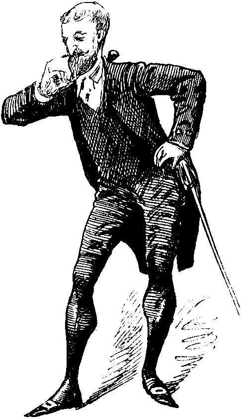 Riding Master (saluting with cane). Evenin', Gentlemen—your 'orses will be in directly; 'ope we shall see some ridin' this time. (Clatter without; enter Stablemen with horses.) Let me see—Mr. BILBOW-KAY, Sir, you'd better ride the Shar; he ain't been out all day, so he'll want some 'andling. (Mr. B.-K., with a sickly smile, accepts a tall and lively horse.) No, Mr. TONGS, that ain't your 'orse to-day—you've got beyond 'im, Sir. We'll put you up on Lady Loo; she's a bit rough till you get on terms with her, but you'll be all right on her after a bit. Yes, Mr. JOGGLES, Sir, you take Kangaroo, please. Mr. BUMPAS, I've 'ad the Artful Dodger out for you; and mind he don't get rid of you so easy as he did Mr. GRIPPER last time. Got a nice 'orse for you, Mr. 'ARRY SNIGGERS, Sir—Frar Diavolo. You mustn't take no notice of his bucking a bit at starting—he'll soon leave it off.