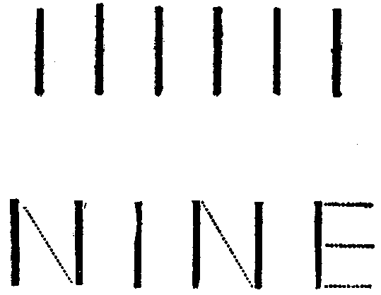 This is a simple little puzzle. Take eleven strips of cardboard, lay six of them at exactly equal distances on the table, and ask one of the company to add the five other strips and yet only make nine. It is done by placing six of them parallel to each other—the others are used to spell out the word nine.
