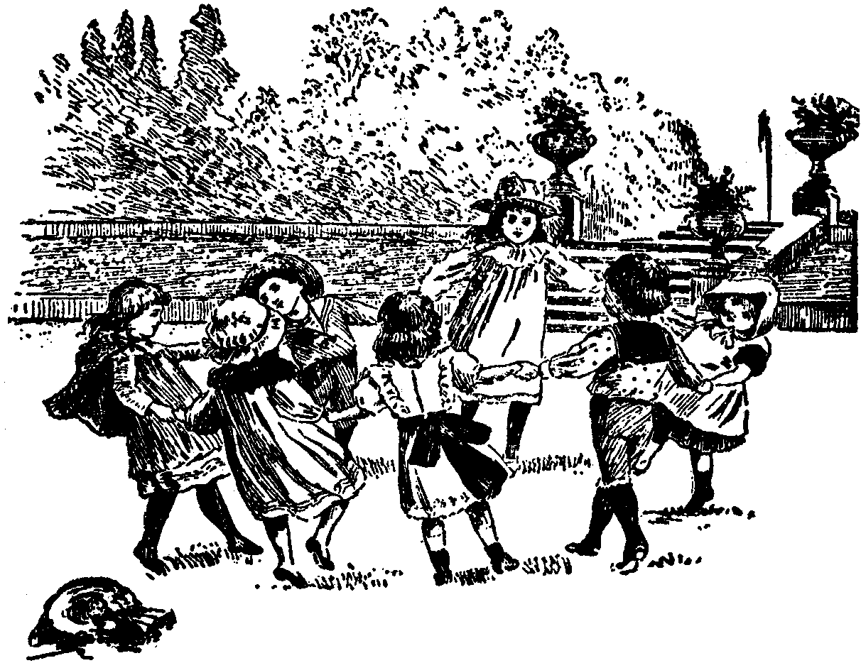 The players join hands to form a circle. About ten erasers are placed in the center of the circle, with spaces between them through which a player might step. The players then try by means of pushing or pulling their comrades by means of clasped hands, to make them [pg 104] knock over the erasers. Any player who knocks over an eraser or who unclasps hands must take his seat, the erasers again being replaced. The first players so leaving the circle form a scrub circle. The player wins who remains longest in the first circle.