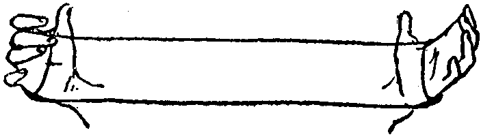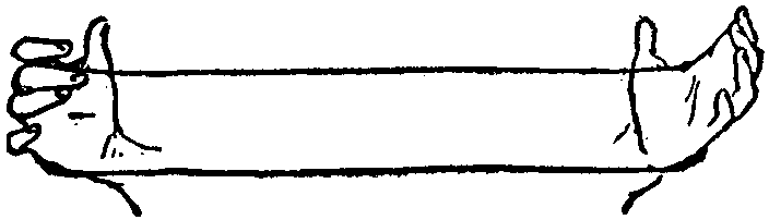 Take a coin in each hand and stretch out your arms as far apart as you can. Then tell your audience that you will make both coins pass into one hand without bringing your hands together. This is easily done by placing one coin upon the table and then turning your body round until the hand with the other coin comes to where it lies. You can then easily pick the coin up, and both will be in one hand, while your arms are still widely extended.