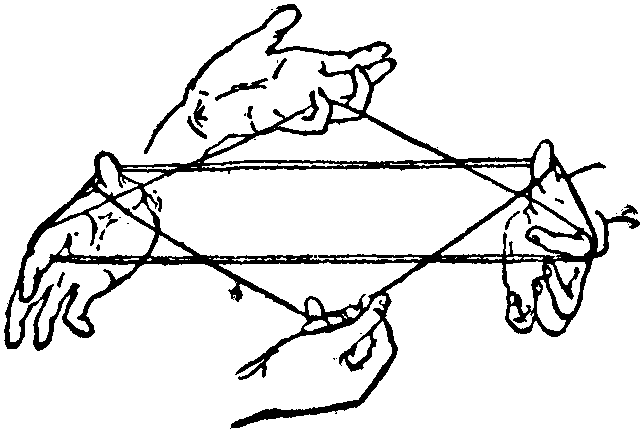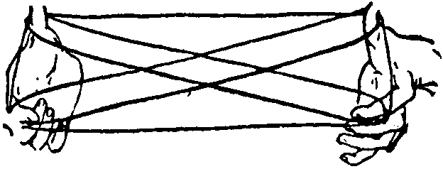 For this game you require a white sheet to be hung up at the end of the room. Then the "shadow-makers" take up their places on low stools behind the sheet. There must be only one lamp in the room, which should be placed about six or seven feet behind the "shadow-makers." Then the "shadow-makers" drape themselves with shawls, or anything handy, and take their places so that their shadows are [pg 119] thrown upon the sheet. They must, of course, try to disguise themselves, so that the "shadow-seekers" may not be able to guess their identity. By loosening the hair and letting it fall over the face, a girl may appear like a man with a beard; bending the finger over the nose gives one a very queer-looking hooked nose in the shadow, and entirely alters the appearance of the face. Covering one's self up in a sheet and then extending the arms gives one the appearance of a large bat. As soon as a "shadow-maker's" identity has been guessed he must take his place as a "shadow-seeker," and the one who guessed him becomes a "shadow-maker." The penalty of a glance behind the sheet on the part of the "shadow-seeker" is to pay a forfeit.