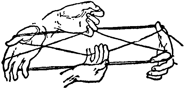 Players all in single file, teacher leading. Each player reaches right hand forward to player next in front and left hand back, grasping hands. March forward, circling to left and winding up into a spiral. When tightly wound, last player should lead, all turn about to left and wind up, circling to right. Several variations should be used later: