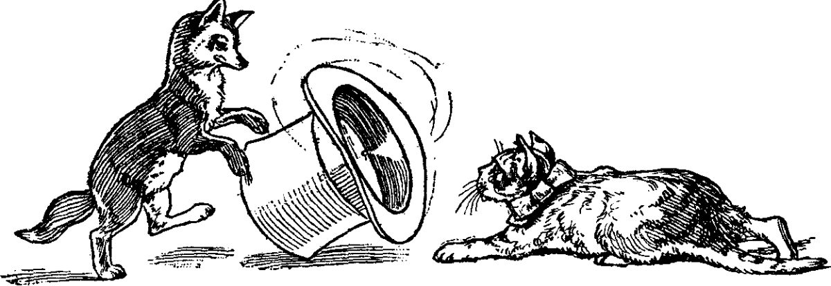 As the kitten grew older and able to take part in the play, what romps the three used to have! How many times I have seen them rushing through the house in wild pursuit of one another, making as much noise as a drove of horses, mother said, with the fox in the lead, and the cats chasing him, and all the children running to look.