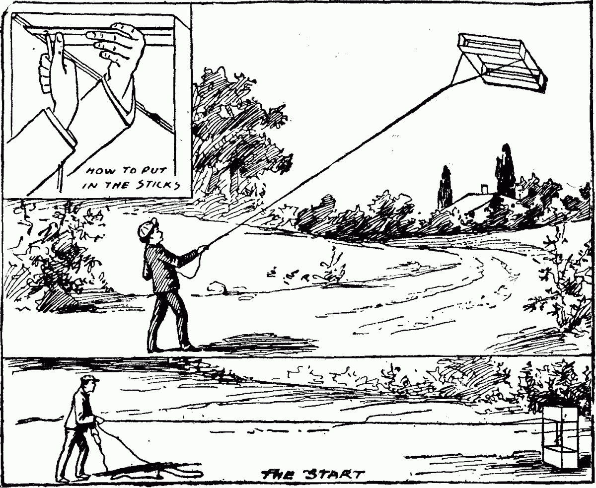 Scientific kite flying has attracted the attention of the world. This kite is the invention of H.H. Clayton, Chief Observer at Blue Hill Observatory, near Boston. It is used at this and other weather stations for sending up instruments in making observations. Kites of this type have attained the wonderful height of 9,200 feet, nearly two miles.