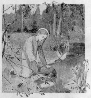 Hui, miten tuuli oli kylmä! Se puisti köyhän Syynen ohutta ja lyhyttä hametta ja puhalsi ihan sieluun asti. Kun hän oli saanut lehmät veräjästä, haki hän itselleen hyvän paikan mäkirinteellä, josta hän voi laskea karjansa ja jossa hänellä oli tuulensuoja suuren kiven takana. Sitte söi hän puolet leipäpalasestaan aamiaiseksi. Eikö hän voisi tehdä tuokkosta ja lypsää yhden lehmän, niin saisi hän hauskat pidot täällä metsässä? Ei, vasikat olivat saaneet luvan imeä tänään emäinsä maitoa, että tulisivat lihavammiksi, ja Syyne tiesi, etteivät ne koskaan muulloin saisi sitä tehdä. Ei hän tahtonut varastaa vasikoiden ruokaa.