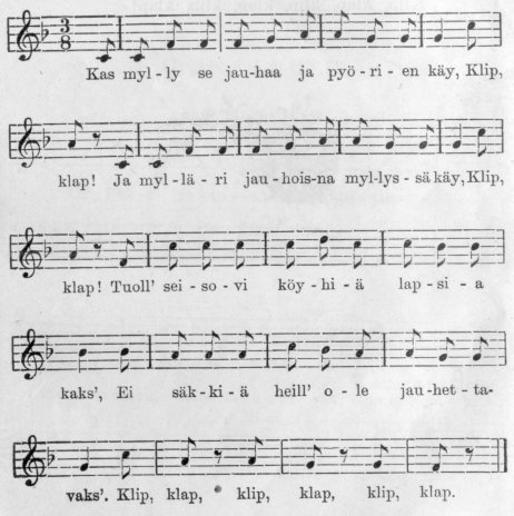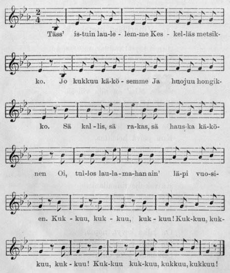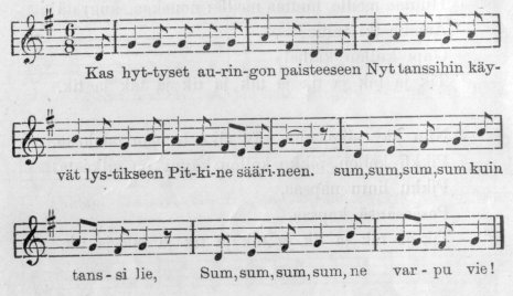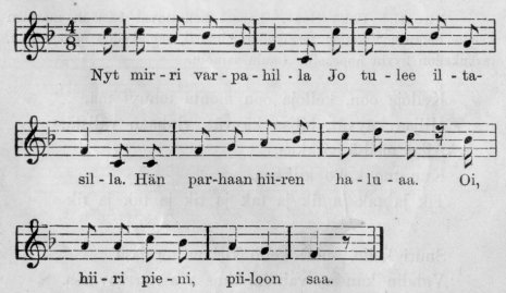 – Se oli leivonen, – huudahti Syyne, samalla iloissaan ja harmissaan. – Onko ennen nähty moista pientä kiittämätöntä homsaa! Mutta se ei tee mitään, kunhan hän ei vaan uudelleen kuoliaaksi palellu!