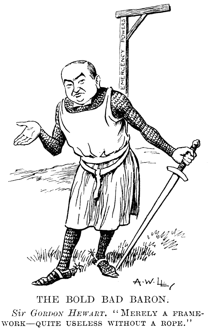 Knight (to his henchman). "Everything all right, Perkins? You haven't forgotten anything? What's that?"