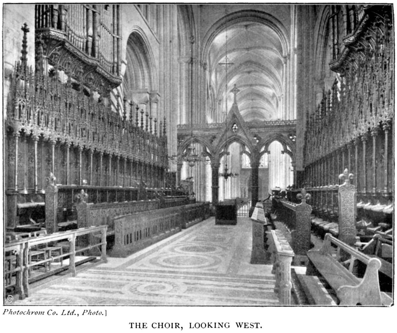 Before leaving this part of the church a note may be devoted to the alterations and additions made during the years 1870 to 1876. A new screen between the nave and choir was then erected; the choir floor relaid with marble mosaic; the stalls replaced in their old positions, and new portions made to replace those destroyed in 1846. A new organ, pulpit, and lectern were also added.