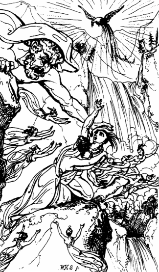 "I cannot prevent the marriage, for that is accomplished, and what is done cannot be undone, even by a god. But I can prevent the consequences which you hoped would ensue. I can take away from the beasts, particularly the Elks, the wisdom to devise stratagems to effect their purpose of usurping my power; and I can take away their speech, which will further spoil their sport."