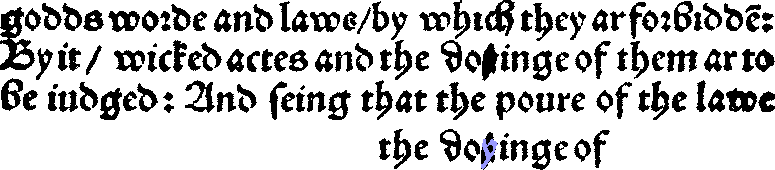An other kinde of cohabitation / or dwellinge together there is which ys not free / and that ys where || men are compelled to communicate withe wicked supersticions / to be presente at Idolatries / and so to defyle them selues.