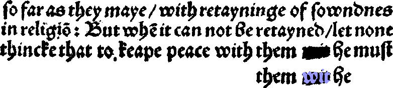 3 The thred thinge that theise men must take heede of / and Rule which they must obserue is. That they do not communicate / with the vnfaythfull in their supersticiõs and idolatries / nor iet do so mutch as outwardly to seame to allowe them. Thys ys not to be doone in ony wise / no not in hope therby || to wynne the vnbeleauer from hys supersticion / and Idolatrie: Ro. 3 For this Rule of the holy ghoste doth euer remain certain / Euell things ar not to be doone / that goode maye comme therof. This vnchaungeable rule must not be broken.