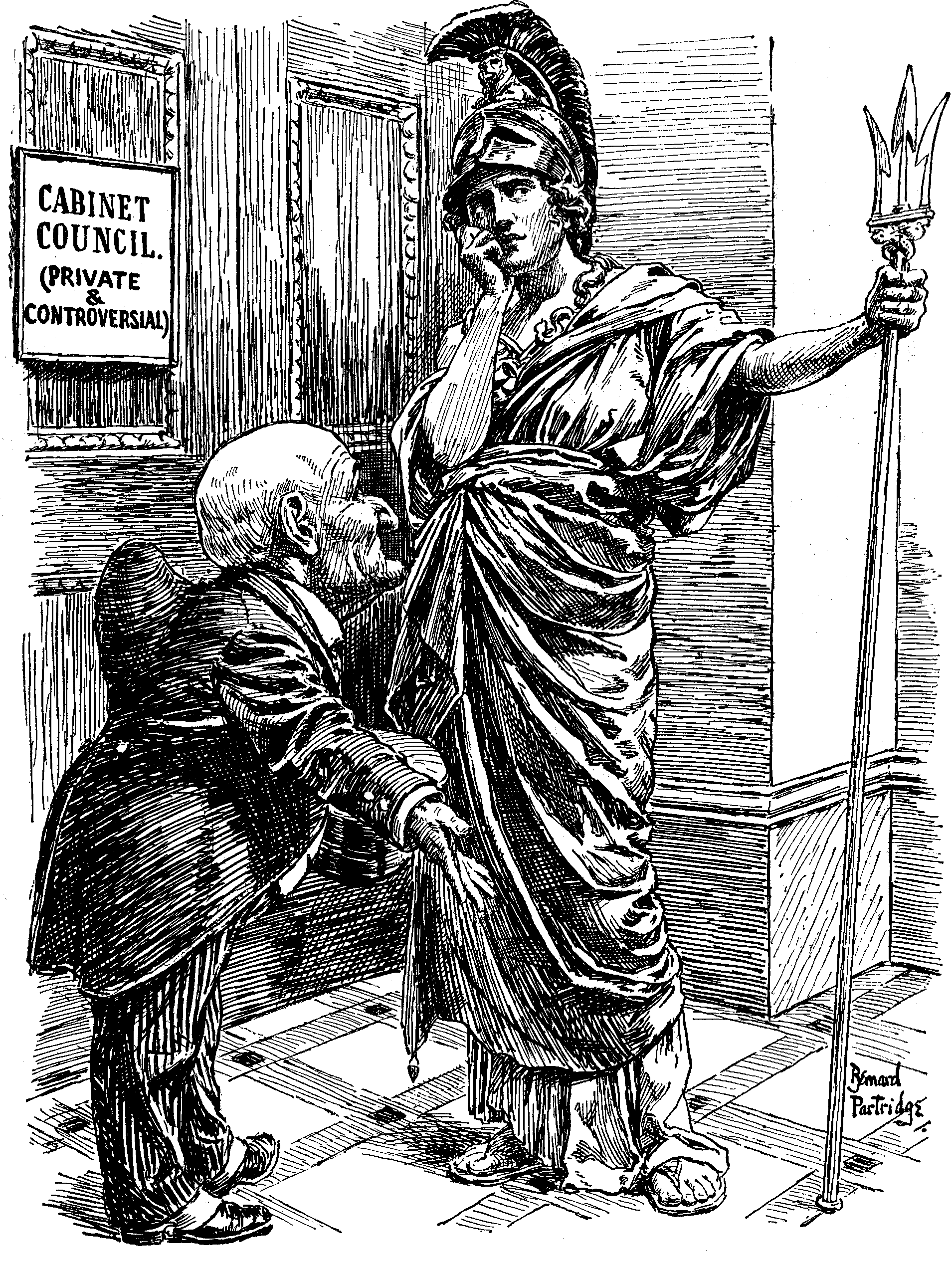 Such a paltry sum to make a fuss about! But, as usual, we hide our real feelings behind this flippant mask. Reading between the lines we confess to strange apprehensions. Why has the Princess so gravely exceeded her dress allowance? Has she, on behalf of her beloved country, been collecting war-ships? Has she 50 or 60 Dreadnoughts up her sleeve to upset the balance of naval power on "the day"? We make the German Chancellor a present of these disturbing reflections.
