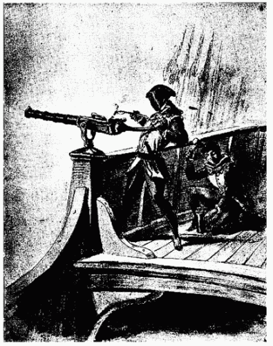 [86] Solían enseñarse á los loros en América, estas cantinelas de los pajes y la voz de fuego á babor y á estribor al pasar las naos por la popa de la Capitana real.