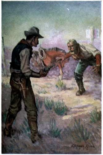 "Huh!" The holdup eyed him suspiciously. "Keep your hands stric'ly away from your pockets for a minute." He slapped them in quick succession. "No gun," said he, "and that's lucky for both of us, maybe. Business is business, partner, but I hate to set an old-timer afoot complete. Keep out about ten for smokes and grub."