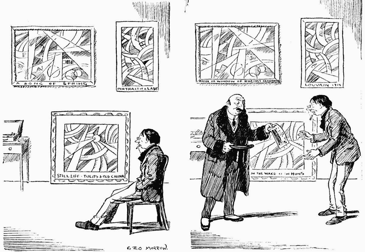 ["The Cologne Gazette" tells us that we are lacking in understanding of the high seriousness of the war; that we use sporting expressions about it. "The Times," referring to this criticism, points out that, though we do not pretend, like the Germans, to make a religion of war, our sporting instinct at least enables us to recognise that to draw the sword on women and children is "not cricket."]