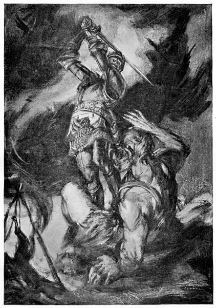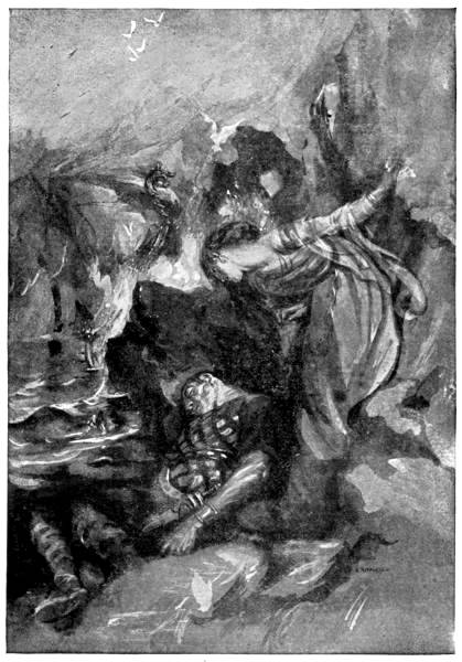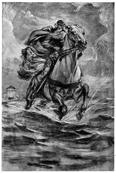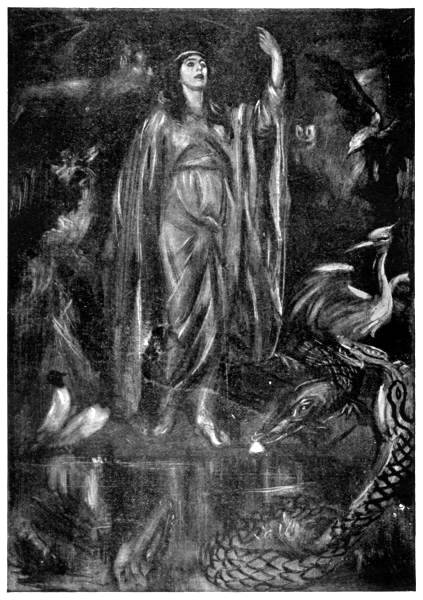 On the following day Jud-Hael made public his dream, but, like Nebuchadnezzar of old, he could find no one to interpret it, so he turned to the bard Taliesin as to another Daniel. Taliesin, says the legend, then an exile from his native land of Britain, dwelt on the seashore. To him came the messenger of Jud-Hael and said: “O thou who so truly dost interpret all things ambiguous, hear and make clear the strange vision which my lord hath seen.” He then recounted Jud-Hael’s dream to the venerable bard.