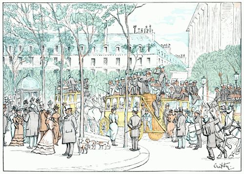 En voyant les proportions inusitées de ces véhicules, on comprend facilement qu'ils puissent contenir un nombre considérable de voyageurs; ce qu'on conçoit moins aisément, c'est que, si bondés soient-ils, il reste pendant tout le parcours deux places à la disposition des amateurs.