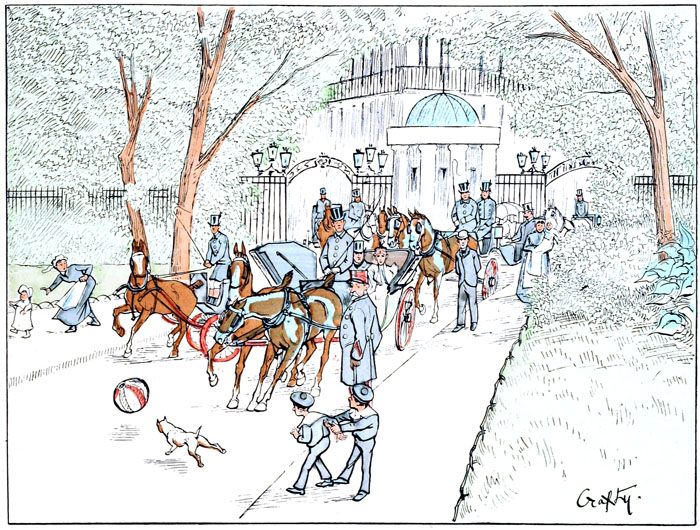 La consigne qui veut que les voitures traversent au pas cette oasis destinée aux récréations des enfants et des nourrices est parfaitement légitime, et nous trouvons tout naturel qu'on cherche à préserver de tout accident les générations de l'avenir. Mais ne serait-il pas de toute justice qu'on exigeât une certaine réciprocité pour la sécurité des attelages qui s'y aventurent, et qu'on interdît à ces jeunes gens, si paternellement protégés par les arrêtés municipaux, de lancer au nez des chevaux une aussi grande variété de projectiles?