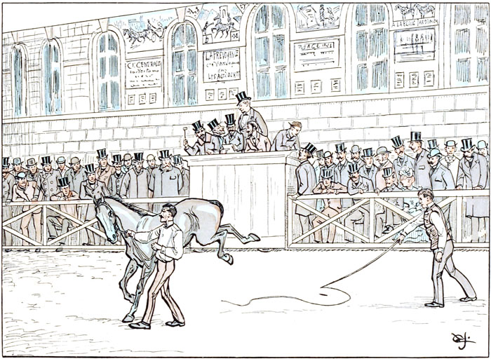 Le public spécial de cet établissement attend toujours la chance de trouver au même prix (trois cents francs) une nouvelle plaisanterie, revendue soixante mille francs, après avoir gagné toutes les courses dans lesquelles l'avait fait partir son heureux acquéreur. L'occasion ne s'est pas renouvelée, que je sache. Mais, comme les petits marchands de chevaux sont restés les clients attitrés de la maison, il en résulte pour le gros public la certitude de ne jamais payer un cheval au delà de sa valeur, les marchands arrêtant net leurs enchères quand ils ne voient plus la possibilité d'un bénéfice à réaliser promptement.