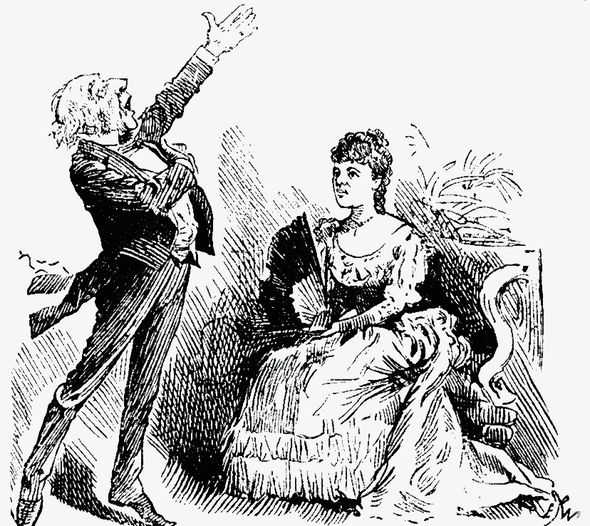 Hoping to meet with the Kernel who had promised to introduce me to the Hon. Mr. William Bufferlow, Esquire, wulgerly called Bufferlow Bill, I sauntered round to the Injians encampment, but was there told he had gone to dine with some other Savages at the Savage Club, so I coudn't see him. Howsumever I fell into conwersation with one of the tip-top managers, and he introduced me to sum of the principal Braves, as they calls 'em, and their Squaws, and porposes. They was worry affable and perlite, as I'm told as all reel savages is, but I carnt say much for their hartistick taste. There was one savage lady with a savage dorter and a pickaninny about rising four, as grately surprised me. The yung lady wood have bin werry good looking if her Ma had let her alone, but she had painted her two cheeks such a brite skarlet that skarlet runners is nothing to 'em, and as for the pore little chap his hole face was painted a greenish yeller, like a werry bad case of jarndice, and all his air a brite green. But such is my natral perliteness, that when his fond Ma held him up to me and said, "Lookee, lookee, ain't him Booty?" I said, "Oh! yessee, yessee!" I didn't dare to kiss it, for fear its face wood have stuck to mine, witch woudn't ha bin nice.