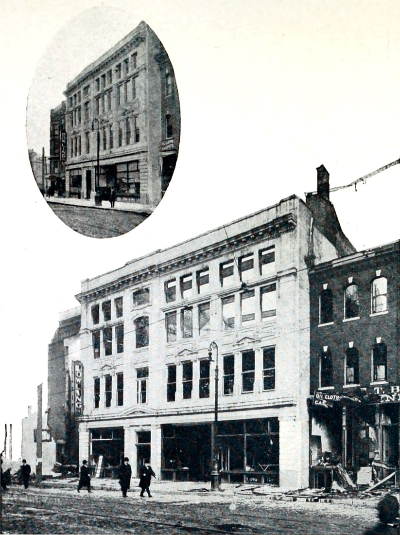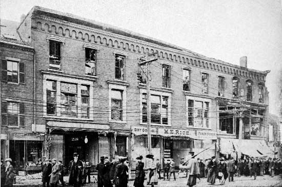Stebbins Block, showing Knights of Columbus Hall, the southern limit of the fire on Broadway.