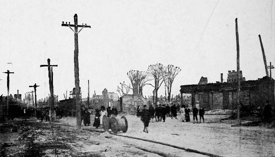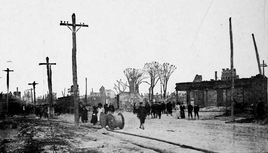 In response to a call from the relief committee, hundreds of automobiles offered their services in delivering goods to the homeless, and the work of relief was greatly aided by this means.