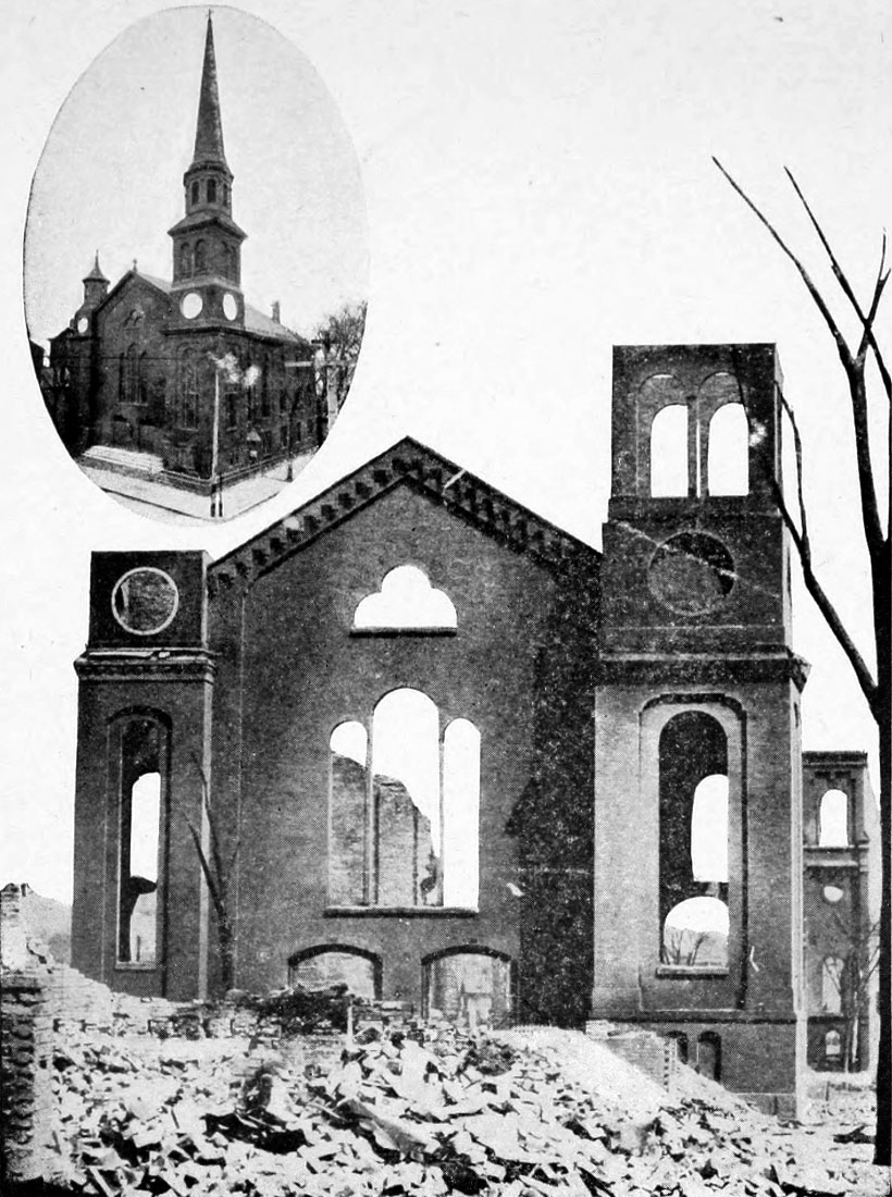 First Baptist Church, Central Ave. Before and after the fire.