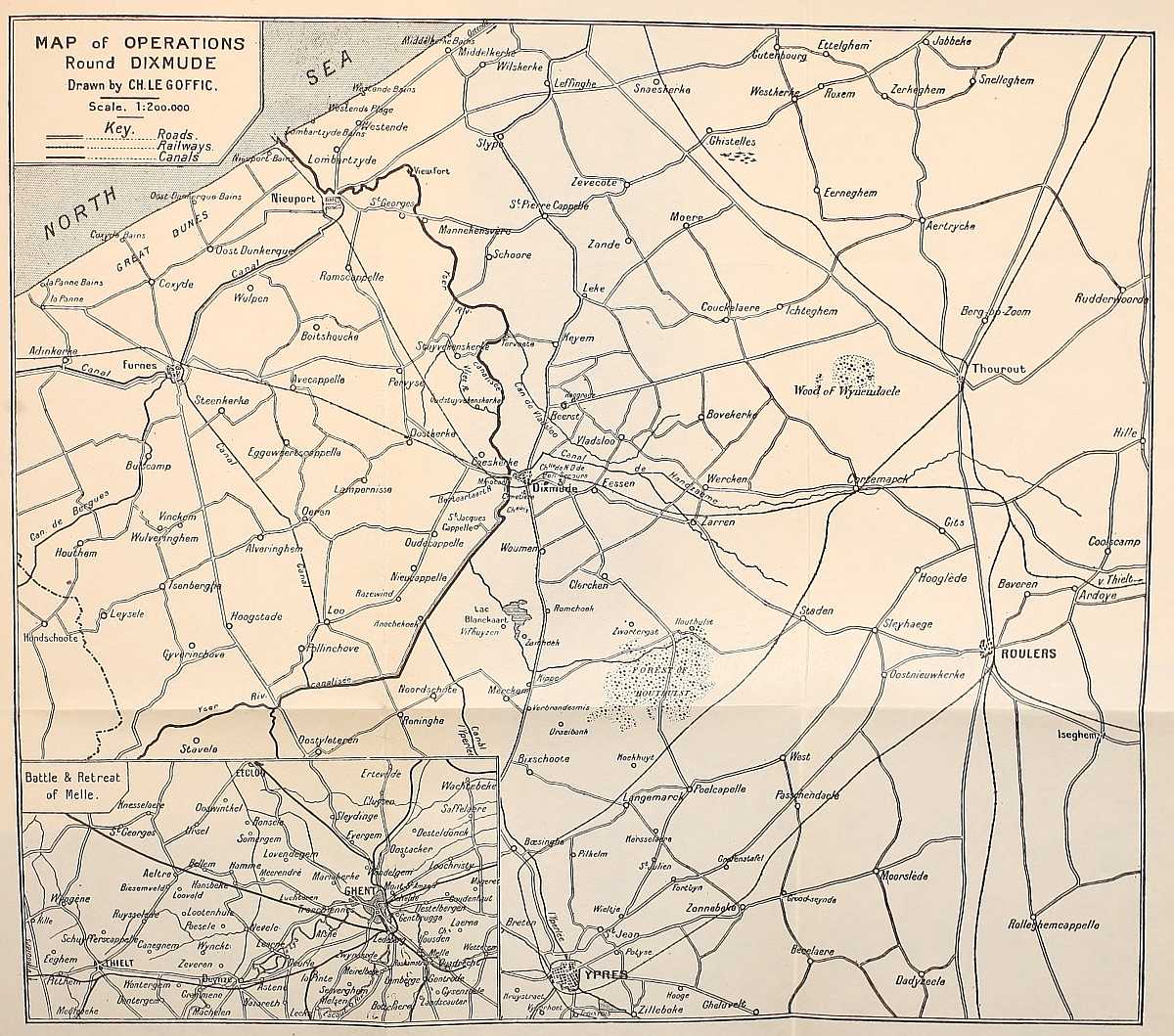 [66] It must be remembered that the Belgians had been fighting for three solid months, and that until the 23rd October they had faced the Germans alone, if not at Dixmude at least as far north as Nieuport.