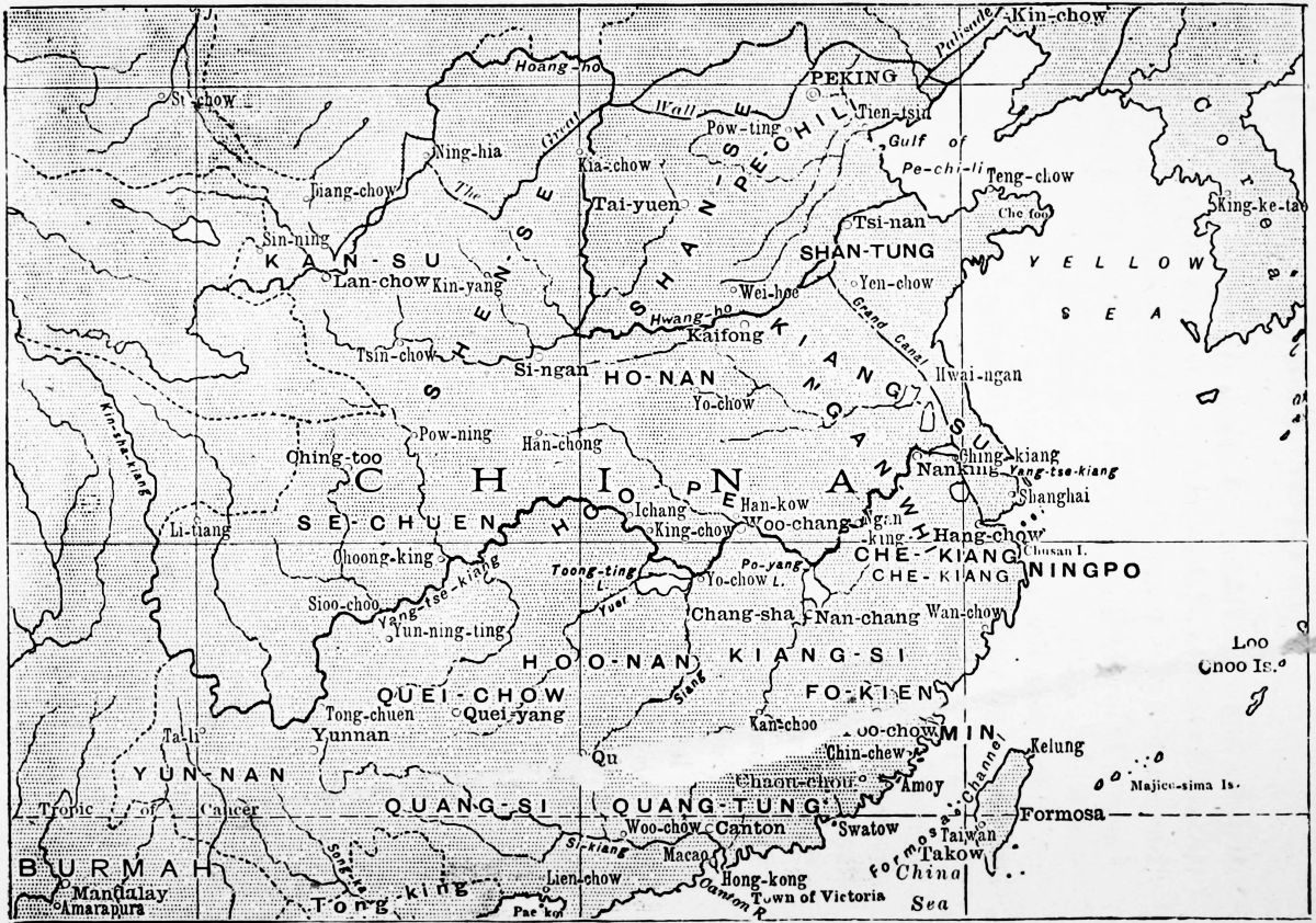 Text uses uses varied hyphenation on the naming of the cities. This includes both Fu-kien and Fukien, Poahbi and Poa-bi, and Pei-ho and Peiho, among others.