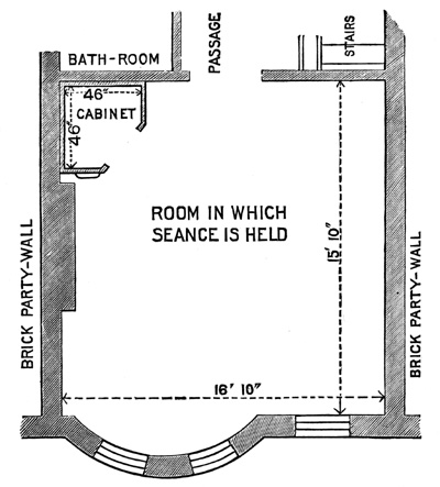 I herewith submit a carefully drawn plan of the cabinet and its surroundings, made by a competent architect, who has never seen any of the manifestations, and consequently is not a believer in them.