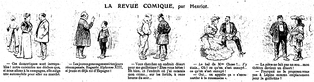 A la Gaîté, excellente reprise du célèbre Champignol malgré lui, de MM. G. Feydeau et M. Desvallières, avec quelques-uns des artistes de la création, notamment M. Germain. MM. Galipaux, Noizeux, Mmes V. Lavergne et M. Lavigne ont aussi leur bonne part du succès.