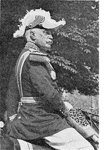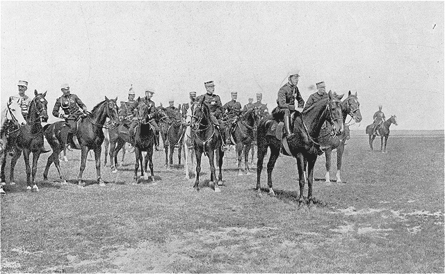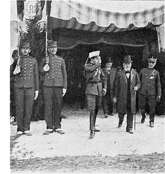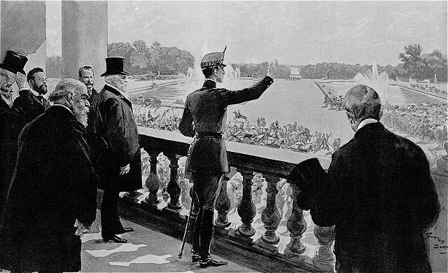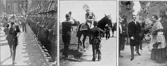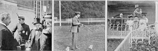 | En général d'infanterie, à Versailles, passant la revue du piquet d'honneur. | En général de lanciers, à la revue de Vincennes. | Au Grand Steeple-Chase d'Auteuil. En civil, devant la chapelle espagnole de l'avenue de Friedland. |