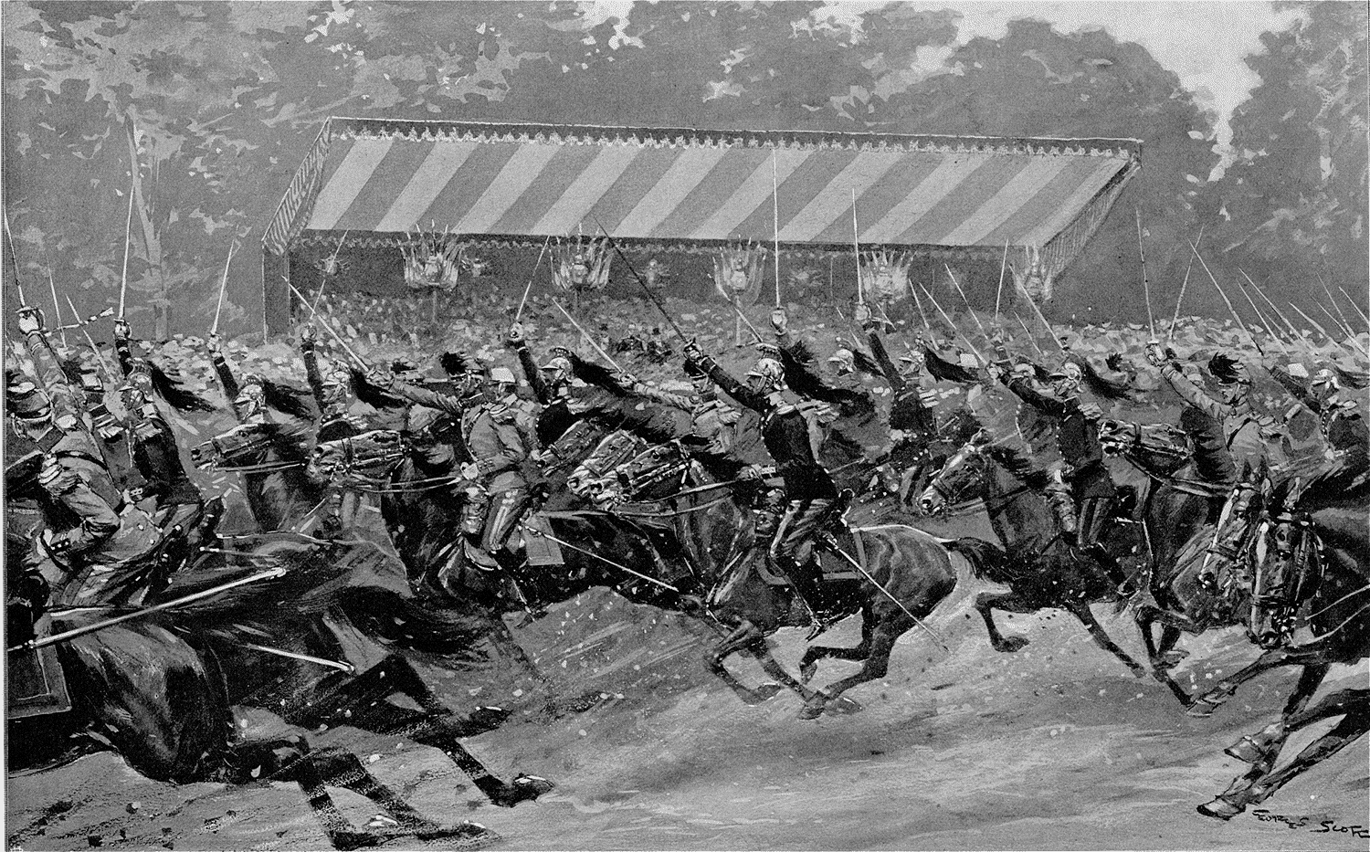 une charge à toute allure devant la tribune officielle.