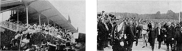 | A Versailles, entre M. Berteaux et M. Loubet. | Au tir aux pigeons du bois de Boulogne. | Au Grand Steeple-Chase d'Auteuil. |