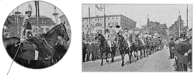 | Le kronprinz Frédéric-Guillaume. | Le cortège nuptial dans l'allée «Unter den Linden». |