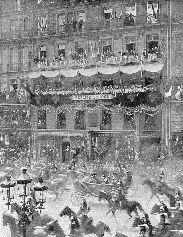 Le roi Alphonse XIII, passant avenue de l'Opéra au retour