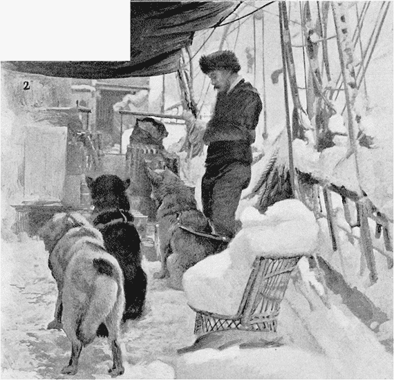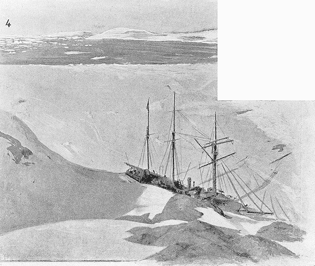 »Une large voie d'eau s'est déclarée à l'étrave, et le roulement continu du flot qui monte et nous envahit augmente d'instant en instant. Déjà l'eau s'étend en nappe jusqu'aux chaudières. L'équipage se jette aux pompes, dégage la cale et abat les cloisons pour faciliter l'écoulement de l'eau par l'arrière. On calfate tant bien que mal, mais notre situation devient des plus dangereuses, les icebergs se rapprochant de plus en plus. Ce serait folie de vouloir risquer d'atteindre le large avec des embarcations, et la côte est inabordable.