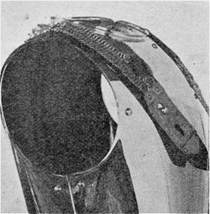 ![]() La cuirasse du capitaine Schneider. (La patelette de cuir et la chaînette de l'épaule droite ont été coupées par un projectile de la bombe.) |