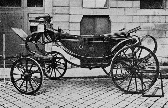 l'Élysée (une des glaces, brisée, est appuyée à la roue de derrière).