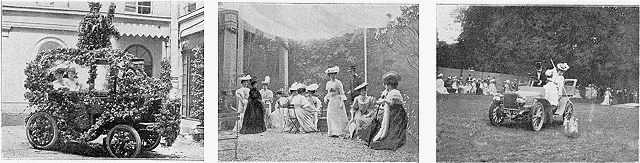 | Le prix d'honneur du Corso automobile fleuri du bois de Boulogne. | Un coin du jardin du peintre Chartran pendant la garden-party du 30 mai. | Une figure originale du dernier gymkhana au cercle du Polo. |