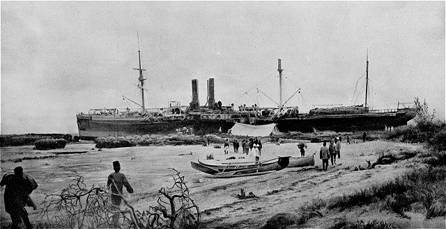 Le campement des naufragés du Salazie, près du paquebot