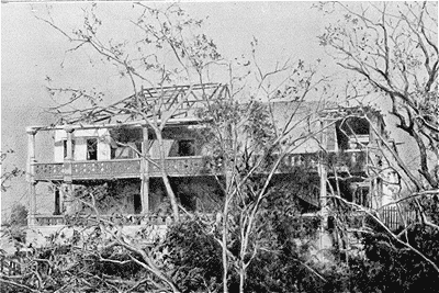 Ce fut le dimanche 24 novembre que se déchaîna le cyclone. Pendant la moitié de la nuit il fit rage. Les frêles baraques de bois et de tôle qui constituent là-bas la plupart des habitations furent, en un clin d'oeil, découvertes, renversées, broyées, comme paille. Les maisons même plus solidement construites, les bâtiments administratifs, ne furent pas épargnés non plus. Les habitants, blottis dans les abris les plus invraisemblables, passèrent d'effroyables heures, attendant d'un moment à l'autre la catastrophe suprême.