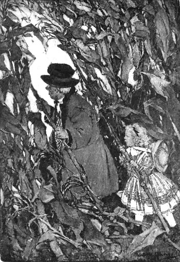 Blushing and laughing, she told Mr. Sanders about it afterward. That genial citizen regarded it as a good joke, and, as such, he made the most of it. She was walking about in the garden one day, thinking of childish things, and remembering what fine times she and Mr. Sanders had had when she was a tiny bit of a girl. She was very old now—quite seventeen—but her childhood was still fresh in her remembrance, and she was quite a child in her freshness and innocence. The corn-patch was in a new place now, but to her it was still the Whish-Whish Woods. In the days when she brought down the Boogerman with her cornstalk gun, the corn was growing in the garden next to a side street on which there was very little passing to and fro; but now the corn-patch was next to a thoroughfare that was much frequented. Remembering how delighted she had been when Randall, the Boogerman, responded so completely to her pretence of shooting him with her cornstalk gun, she was seized by a whim that gave her an almost uncontrollable desire to repeat the performance.