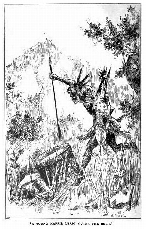 “Anything but this,” cried the big man. Then he said sternly, “Give me your rifle, Piet, and run—run for your mother’s sake. Run, you are untired and the Kaffirs have come miles. Your rifle—quick!”