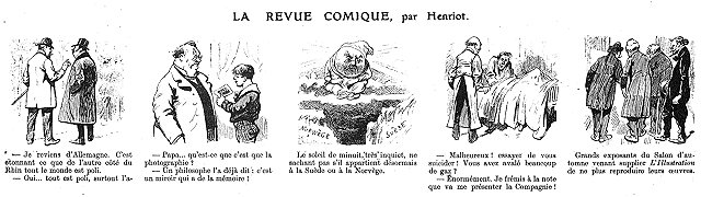A Versailles, dans l'atelier du peintre Georges-Bertrand. Deux cents spectateurs environ, la plupart venus de Paris tout exprès pour jouir du pittoresque et rare spectacle auquel l'artiste les convie. Voici, au premier rang, frileusement enveloppé de sa pelisse, le ministre plénipotentiaire du Japon et Mme Motono; à leur droite, M. Finot, directeur de la Revue, derrière qui sourit Mme Pierson, de la Comédie-Française; voici M. Gaston Menier, député; le prince B. Karageorgevitch, M. René Baschet, MM. Gaston Bérardi, Mariani, le peintre Roll; et, debout, à gauche, M. Henri Lavedan, de l'Académie française, et Mme Lavedan, qui ont l'air de s'amuser beaucoup... Et tout le monde, en effet, s'amuse ici infiniment; car le rideau de la petite scène devant laquelle nous sommes assis vient de s'ouvrir, et la première des «maquettes animées» de Georges-Bertrand vient d'entrer en scène: c'est le clown violoncelliste, dont la prodigieuse virtuosité va nous enchanter pendant de trop courtes minutes. Après lui viendront la cantatrice, le clown jongleur, le chef d'orchestre, Polin, Caruso, Cleo de Mérode et Zambelli. Aux musiques du phonographe invisible s'adaptent si exactement, si spirituellement les gestes, les mouvements de corps, les jeux de physionomie de l'interprète que c'est bien, en vérité, un petit personnage vivant qui s'agite, chante et parle devant nous!
