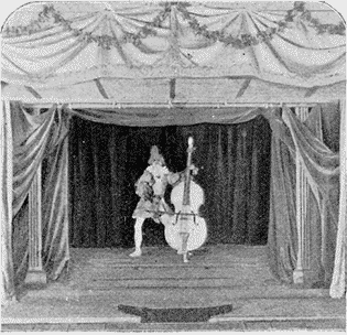 Le joueur de violoncelle sur la scène du théâtre des Marionnettes.